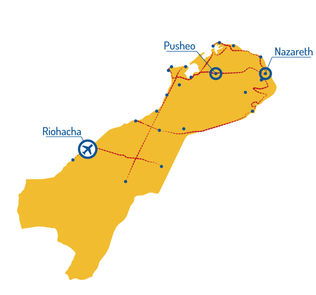 – Recibimiento en Riohacha, almuerzo (compra de mercado), salida hacia Nazareth por el desierto guajiro.